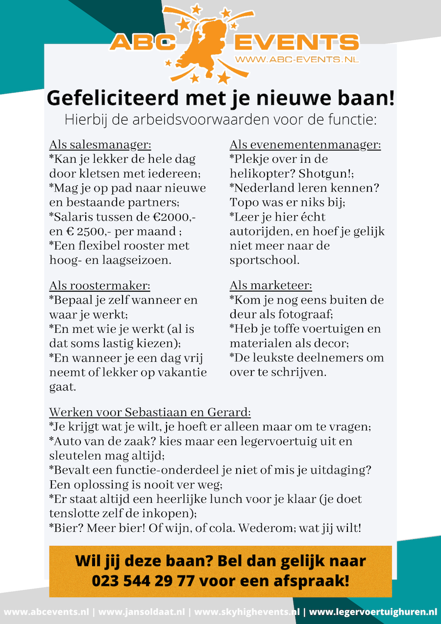Jan Soldaat is een groeiend evenementenbureau en altijd opzoek naar enthousiaste collega’s!